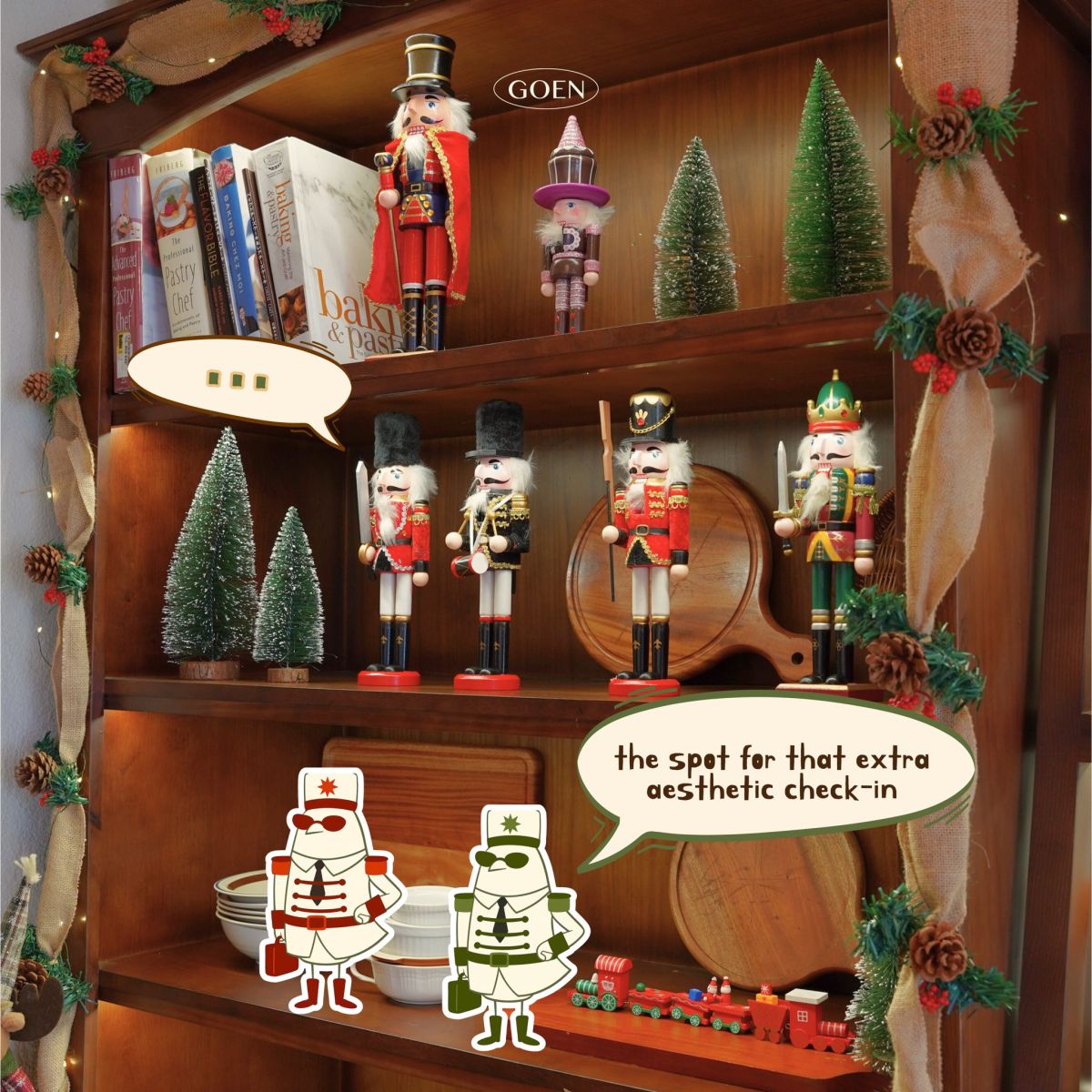 Không gian tuy nhỏ nhưng tụi mình vẫn quyết không “tha" một ngóc ngách nào 🤣, đảm bảo bạn đến GOEN thì mọi vị trí đều mang đến cảm giác Giáng sinh thật ấm áp. Nếu chưa biết nên check-in chỗ nào thì hãy cùng bé Sẻ khám phá trong chuyến “du lịch" ngắn hôm nay nhá